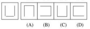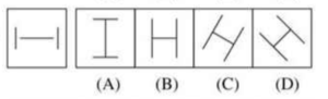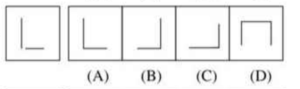 निर्देश (प्रश्न 1-10) निम्नलिखित प्रश्नों में बायीं ओर एक समस्या आकृति दी गई है और दायीं ओर चार उत्तर आकृतियाँ (A), (B), (C) तथा (D) दी गई हैं. उस उत्तर आकृति को चुनिए, जोकि समस्या आकृति में दिए गए टुकड़ों से बनाई जा सकती है और सही उत्तर चुनकर संलग्न उत्तर-पुस्तिका में हर प्रश्न के आगे दिए गए बॉक्स में अंग्रेजी अक्षरांक (अर्थात् (A), (B), (C), (D)) में उत्तर लिखें. 1